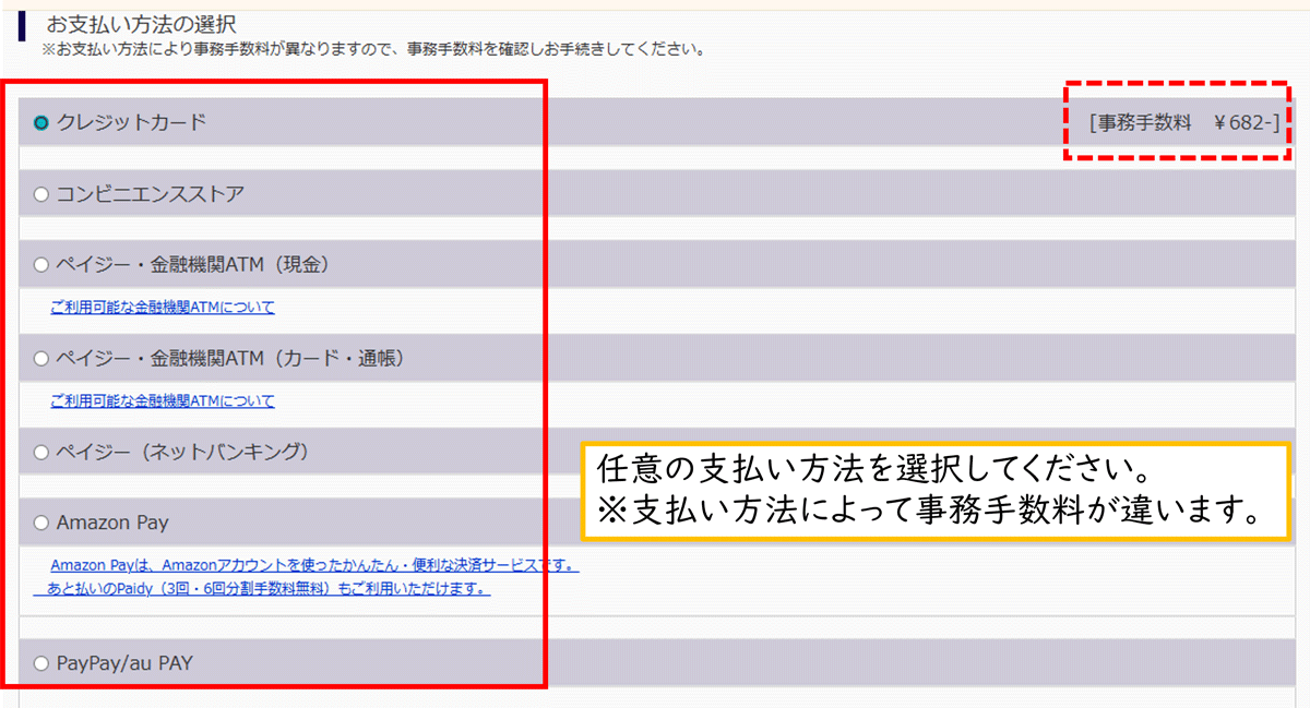 ※お支払いには所定の手数料が掛かりますので、あらかじめご了承ください。手数料は、お支払い方法によって異なります。