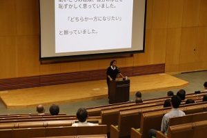 - 身振り手振りを用いて、流暢な英語で堂々と弁論を披露していました