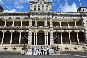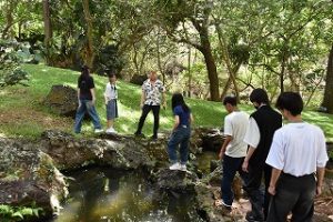 ハワイ修学旅行では、戦艦ミズーリにて平和学習を行った後、島内を観光しながらハワイの歴史や自然環境等を学びました。訪問したハワイ大学では、現地学生との交流を楽しみ、ハワイならではの習慣や食生活等を教えてもらいました。さらに班別自由行動では、ビーチ遊泳やワイキキ水族館の見学など充実した時間を過ごしたようです。また、本校が仏教主義の学校であることから、縁の深いハレイワタウンにある真言宗・弘昭寺を訪れ、同寺を護ってこられた入植者の方にご講話いただいた後、修学旅行を無事に終えました。