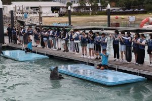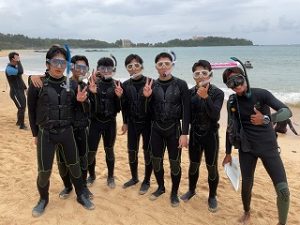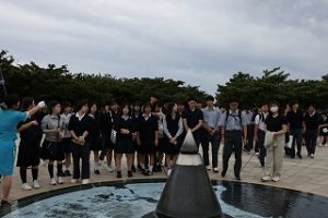 沖縄修学旅行では、県立平和祈念公園で平和学習を行った後、SDGS探究プログラムを通して、現地講師から沖縄での取り組みを学びました。また、班別自由行動ではシュノーケリング・ダイビング等のマリンスポーツ体験や、東村ふれあいヒルギ公園でマングローブ観察、むら咲むらで伝統工芸体験を楽しみました。また、全員で美ら海水族館の見学を行いました。