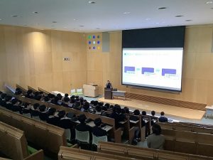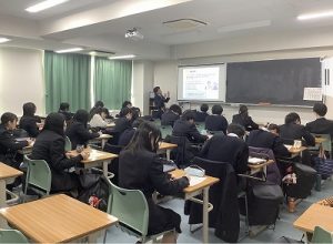 1月19日(月)、探究の時間を活用して1学年を対象に職業人講話が行いました。生徒たちは希望分野ごとにさまざまな職業人の話を聞きました。