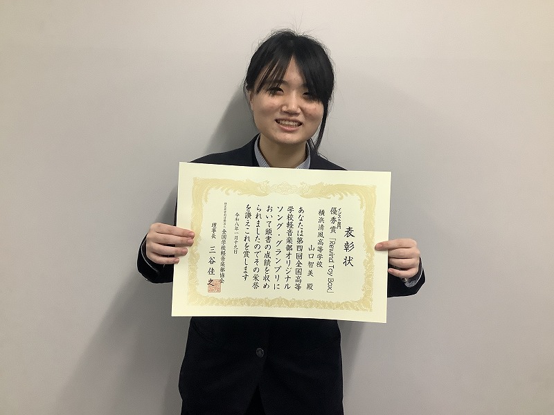 フォークソング部の山口智美さん(3年)が、特定非営利活動法人全国学校軽音楽部協会が主催する、「第4 回 全国高等学校軽音楽部オリジナルソング・グランプリ」にて、「インスト部門 優秀賞」を受賞しました。