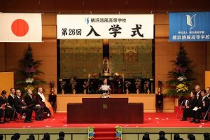 横浜清風には皆さんが活躍できるたくさんの活動の場があります。 学業はもちろんのこと、部活動や生徒会活動、行事なども盛りだくさんです。 高校生活を作り上げていくのは自分自身だという意識を持って、積極的に取り組んでいきましょう。 そして、多くの仲間と出会い、支え、支えられながら進んでいってください。 まずは一歩を踏み出しましょう」と式辞を述べました。