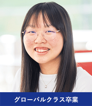 中3の時に中国から日本にやってきた私にとって、横浜清風は日本人の友だちが初めてできた学校です。文化祭では1年生のときに劇を作って撮影し、2年生では理系クラスの個性を発揮しようとミジンコの研究発表をしました。3年生ではラムネを販売しました。食堂のメニューはどれも美味しくて、毎日お昼が楽しみでした。すべてが楽しい時間で、私はありのままの自分を出すことができました。先生との距離も近くて、数学は、10年分の過去問をプリントにしてくださり、苦手な国語は生徒ラウンジでマンツーマンで教えていただきました。将来は海外で働きたいので、海外の大学院に進み、さまざまな文化や考え方に触れたいと思います。