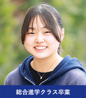 世界の課題を考えるのが面白いと思ったのは、アントレプレナーシップを養う授業の一環として取り組んだ英語のグループ学習です。友だちの視点を知るのは貴重な体験でしたし、考えたことを発表するのも新鮮でした。英語の授業で取り上げられる長文は時事問題が多く、その内容は現代社会や総合福祉の授業ともリンクしていたので知識も興味関心の幅も広がりました。高3の冬に取り組んだ大学の過去問題は、みんなで話し合って解答し、人に教える機会もあったので理解が深まりました。大学は高校の学びを深めるための場、そこで蓄えた知識や教養を社会に還元する国際機関で働ける人材に成長したいと思っています。