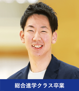 コロナ禍で行事が中止になるなど制限がありましたが、だからこそクラスが一つになれたと思います。所属していたワンダーフォーゲル部には特進コースの部員が多く、真剣に勉強する姿勢に刺激を受けて一般選抜に挑戦しようと思いました。僕は文学部ですが実は国語が苦手で、それをカバーしたのは世界史です。興味深いエピソードを交えながら教えてくださったので世界史が得意科目になりました。クラスには推薦などで早く進路が決まる人もいましたが、最後まで一般選抜受験を応援してくれた仲間の存在は大きかったです。総合進学コースでも、一般選抜への挑戦をサポートしてくれるのが横浜清風の特徴です。